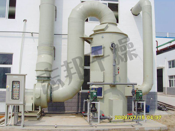 離心噴霧干燥塔空氣經(jīng)過濾和加熱,進入干燥器頂部空氣分配器,熱空氣呈螺旋狀均勻地進入干燥室。料液經(jīng)塔體頂部的高速離心霧化器,(旋轉(zhuǎn))噴霧成細微的霧狀液珠,與熱空氣并流接觸在短的時間內(nèi)可干燥為成品。成品連續(xù)地由干燥塔底部和旋風(fēng)分離器中輸出,廢氣由風(fēng)機空。噴霧干燥塔產(chǎn)品具有良好的均勻度、流動性和溶解性,產(chǎn)品純度高,質(zhì)量好。生產(chǎn)過程簡化,操作控制方便。對于含濕量40—60%(特殊物料可達百分之九十)的液體能一次干燥成粉粒產(chǎn)品,干燥后不需粉碎和篩選,減少生產(chǎn)工序,提高產(chǎn)品純度。對產(chǎn)品粒徑,松密度,水份,在一定范圍內(nèi)可通過改變操作條件進行調(diào)整,控制和管理都很方便。噴霧干燥塔噴霧干燥是液體工藝成形和干燥工業(yè)中廣泛應(yīng)用的工藝。適用于從溶液、乳液、懸浮液和糊狀液體原料中生成粉狀、顆粒狀固體產(chǎn)品。因此,當成品的顆粒大小分布、殘留水份含量、堆積密度和顆粒形狀必須符合準確的標準時,噴霧干燥是一道合適的工藝。